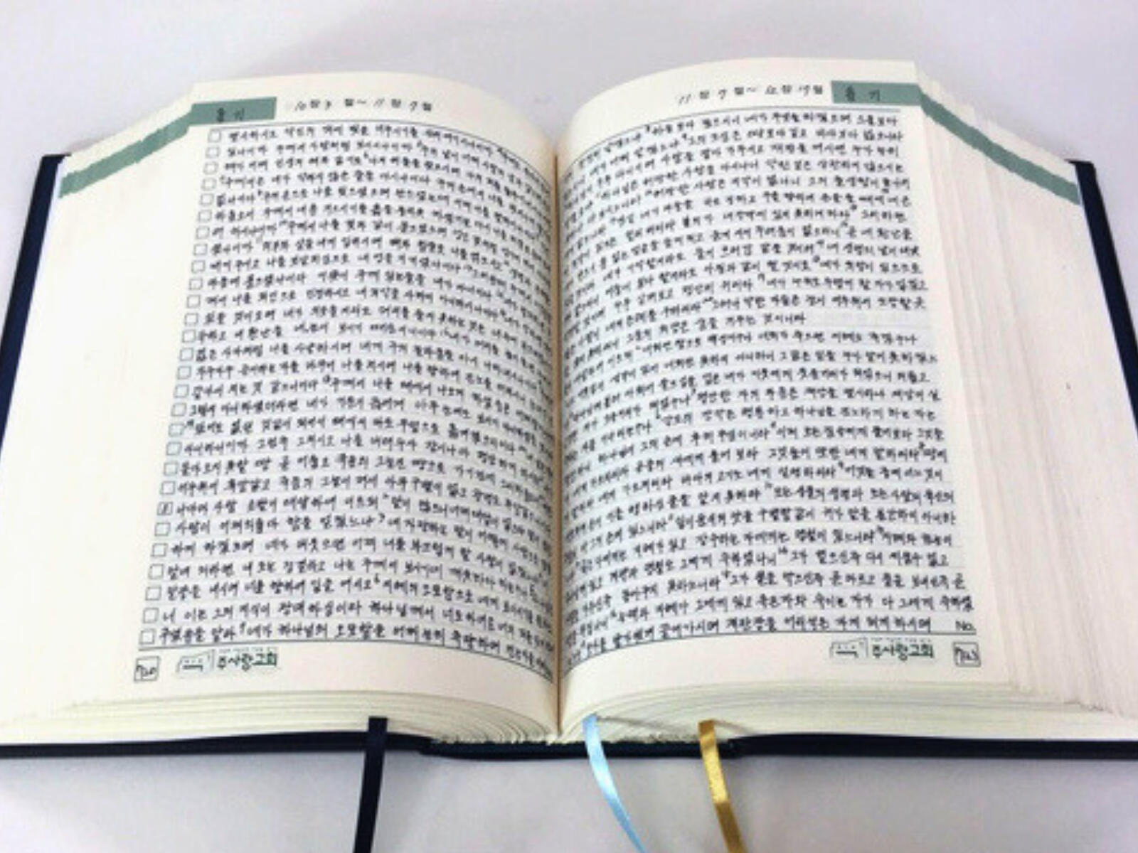 지금도 계속 제본하고 있습니다.필사 성경 보존 제본은